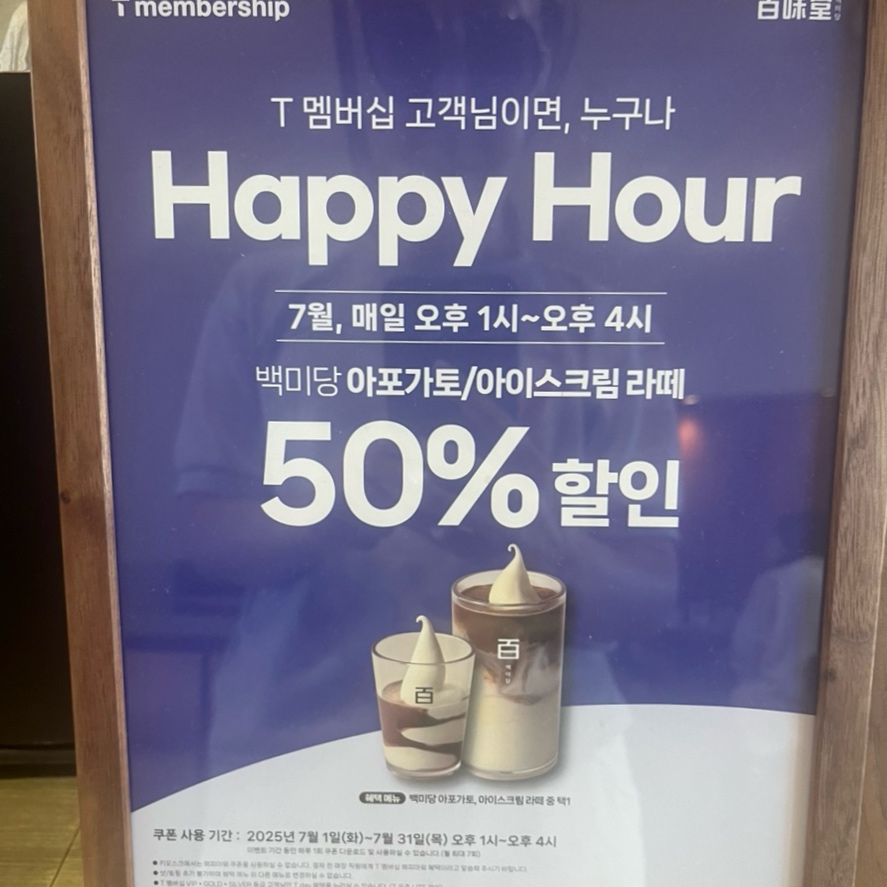 아포가토 또는 아이스크림 라떼는 50% 할인해 주니