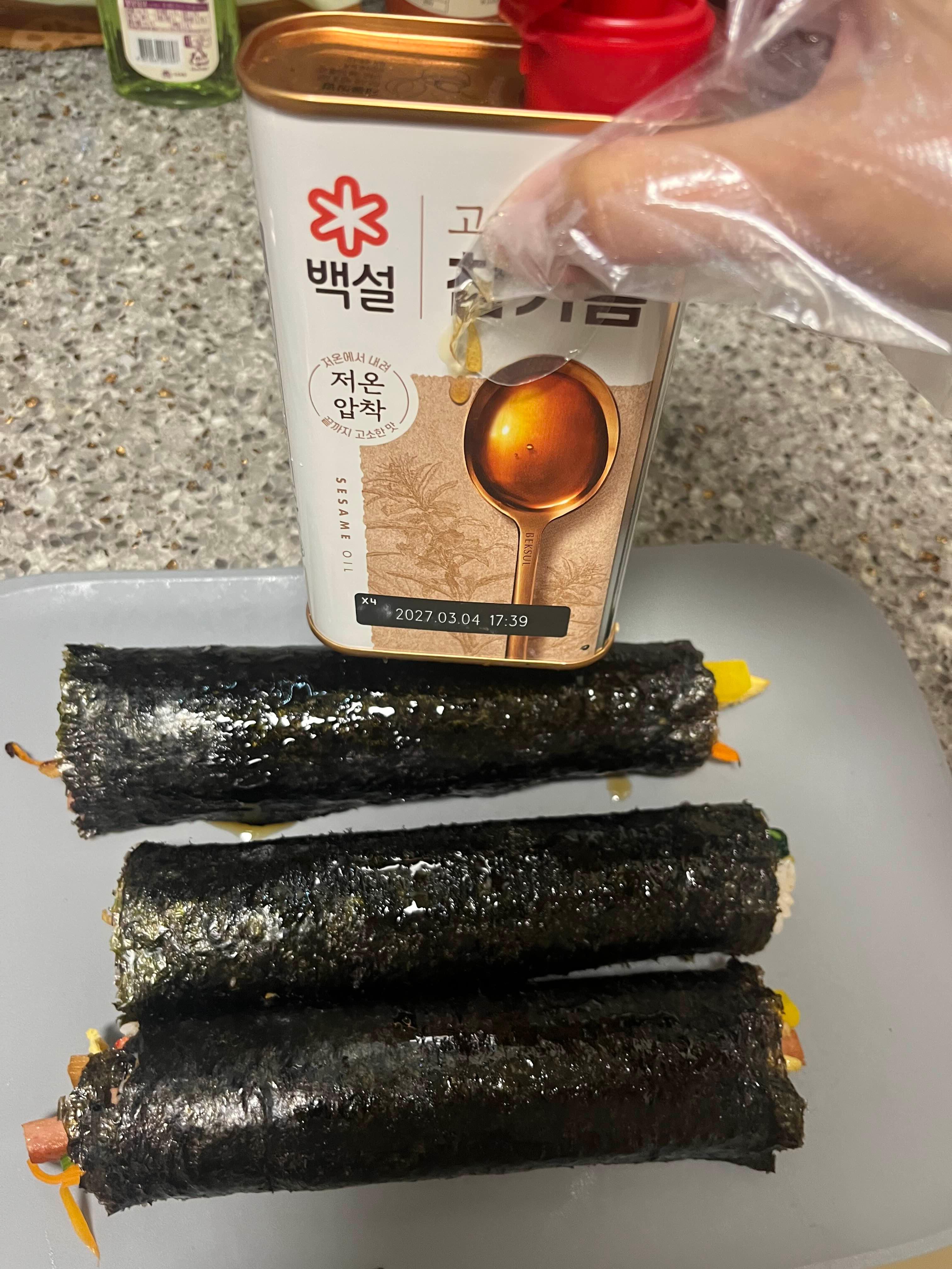 다 말아놓으면 참기름을 둘러주시는데