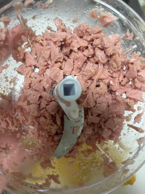 소시지에 딱 절반 80g만 사용해서 다진 후