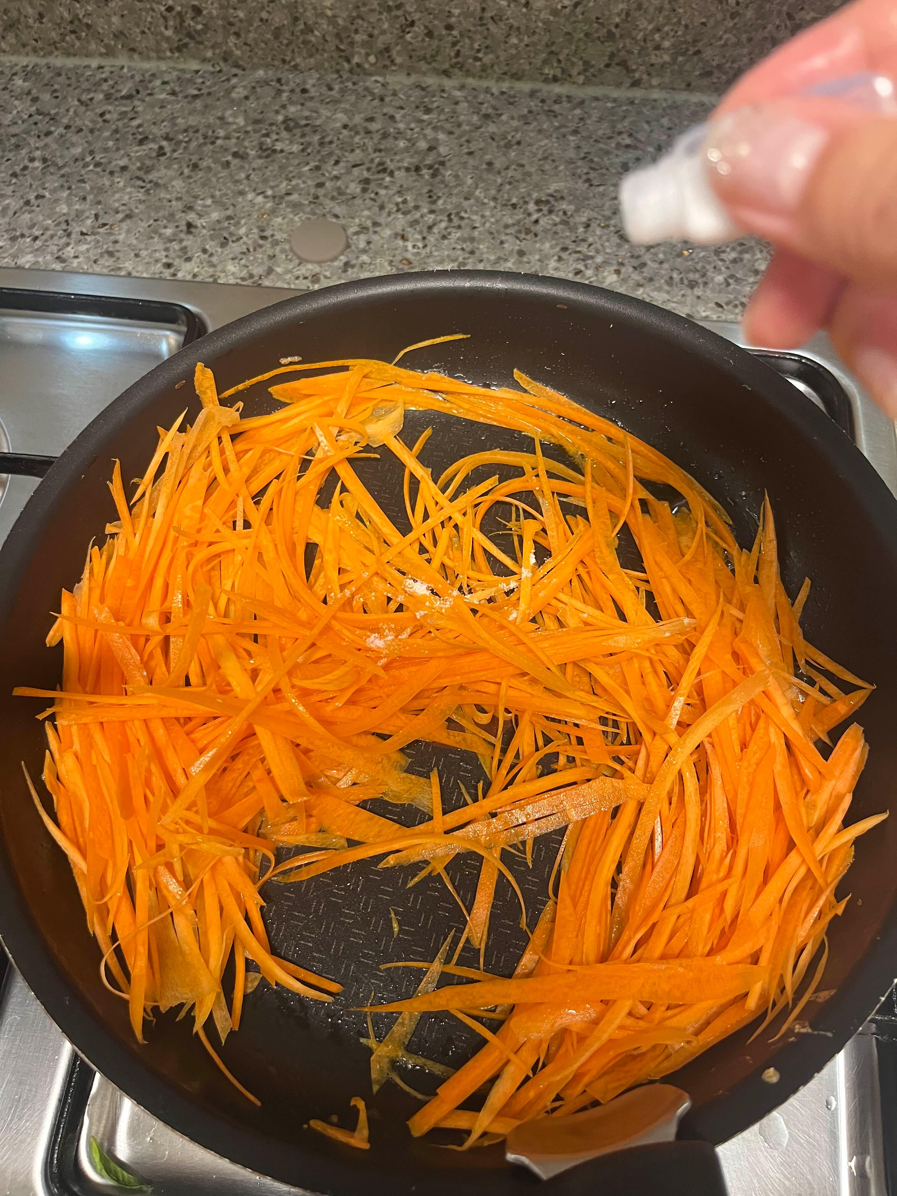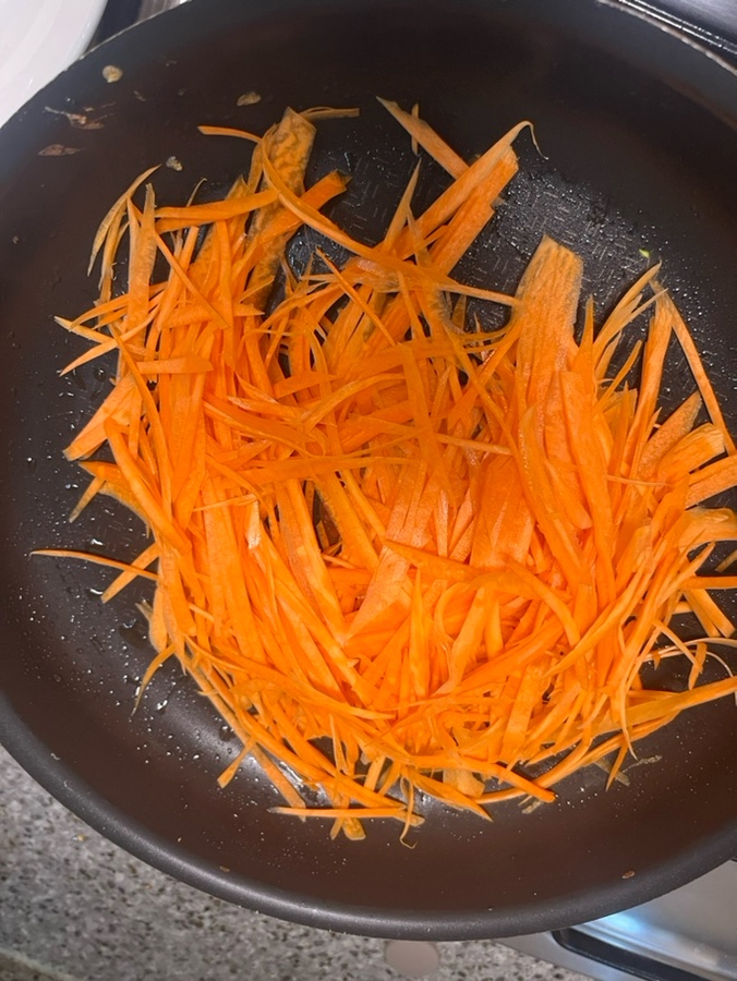 3. 당근 채 썰어 기름에 볶아줍니다