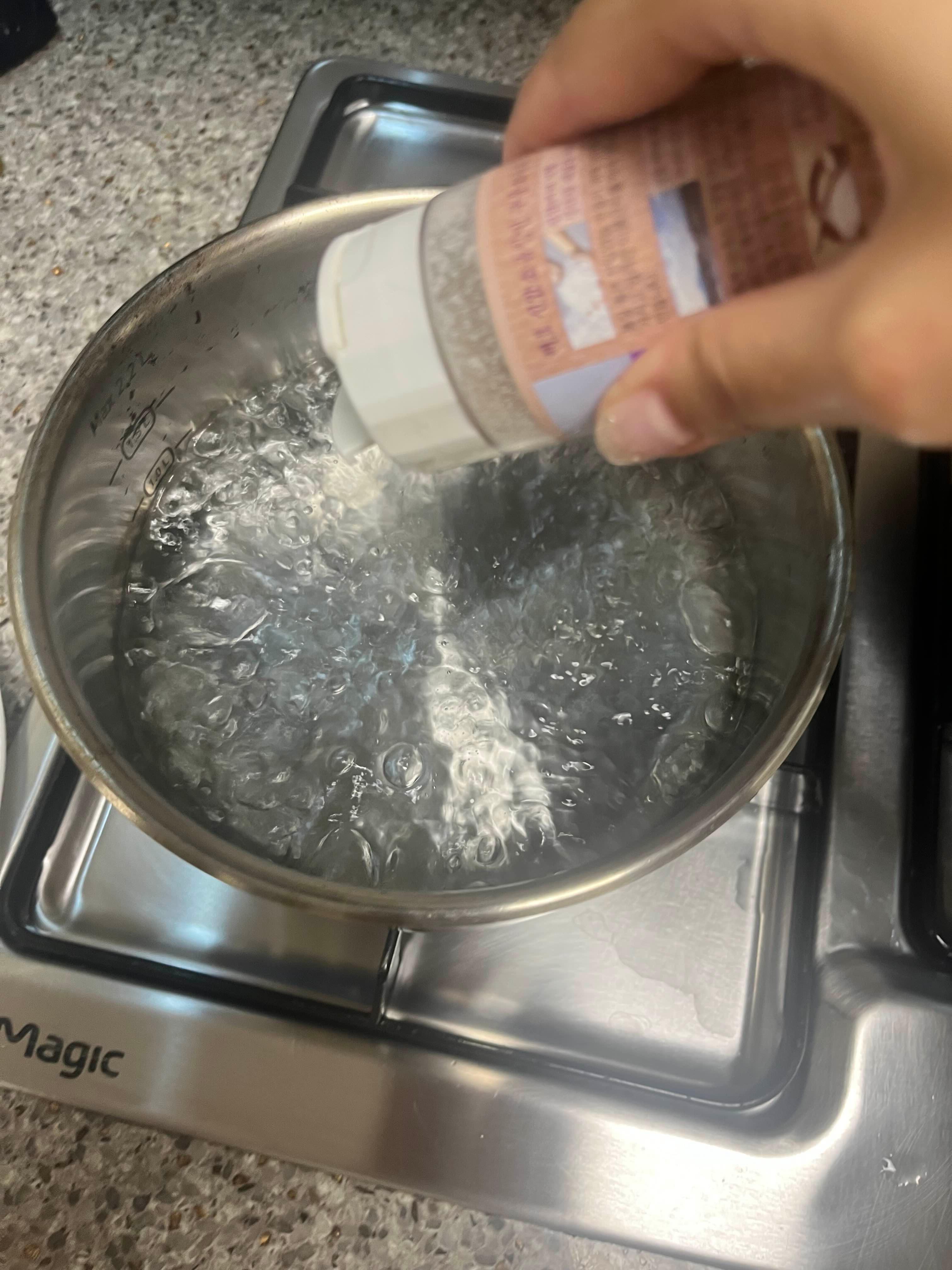 끓는 물에 소금 한 스푼 넣고