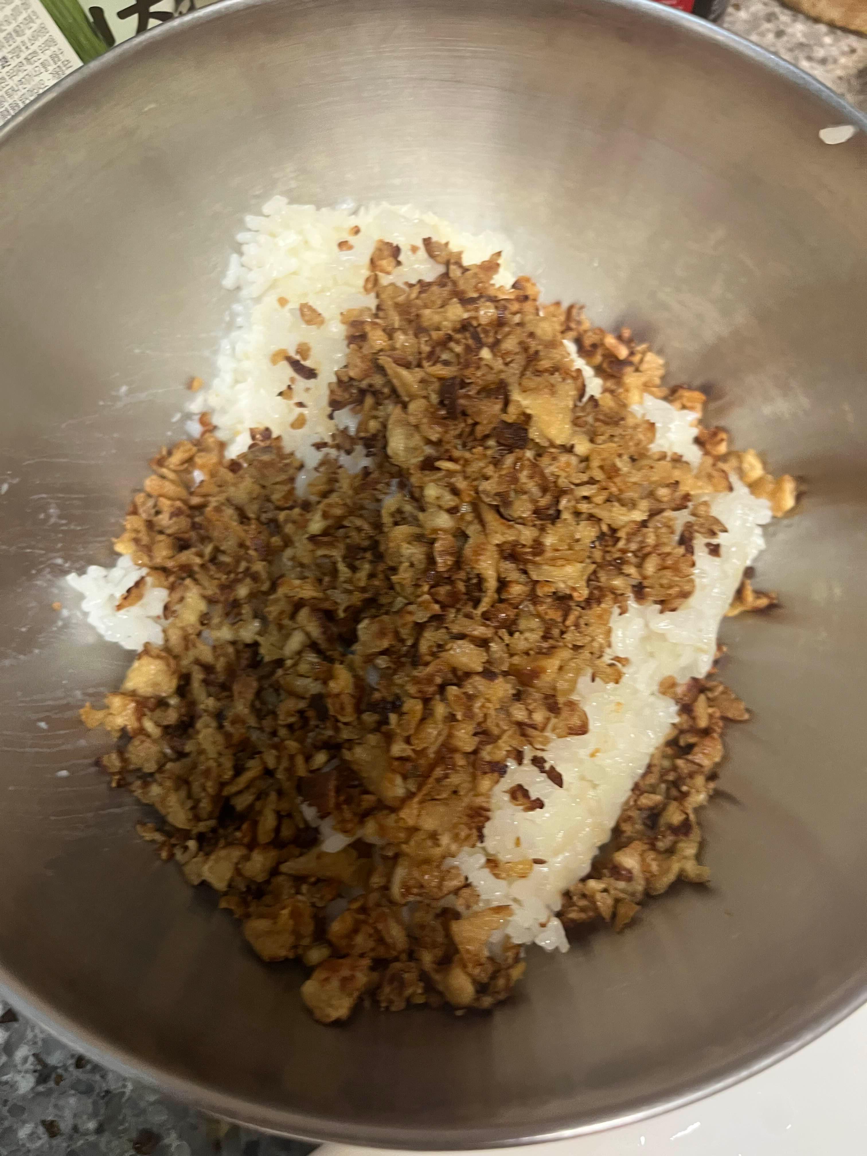 그냥 밥 위에 유부 볶은 걸 얹어둡니다
