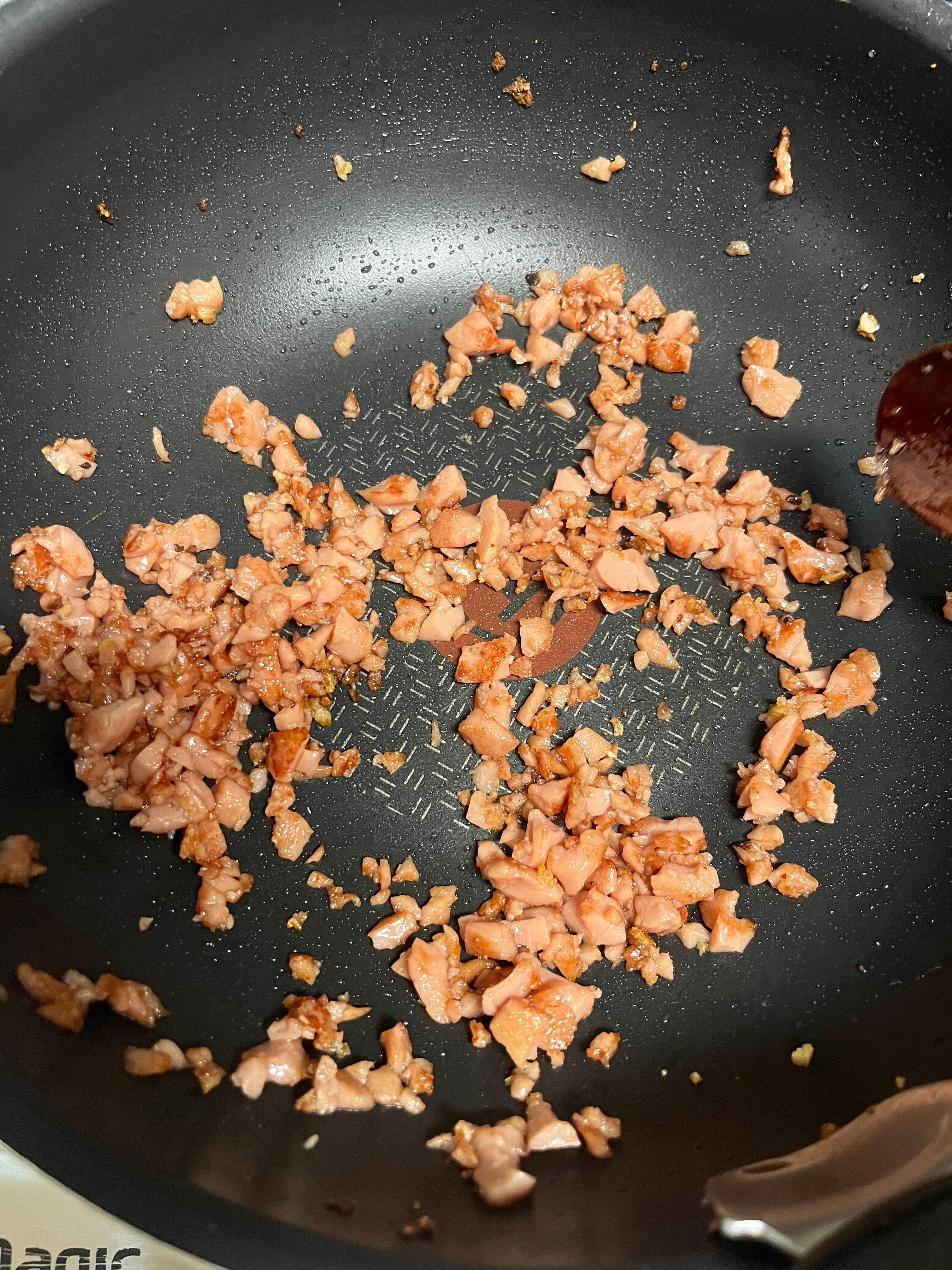 6. 소시지도 잘게 썰어서 볶아주세요