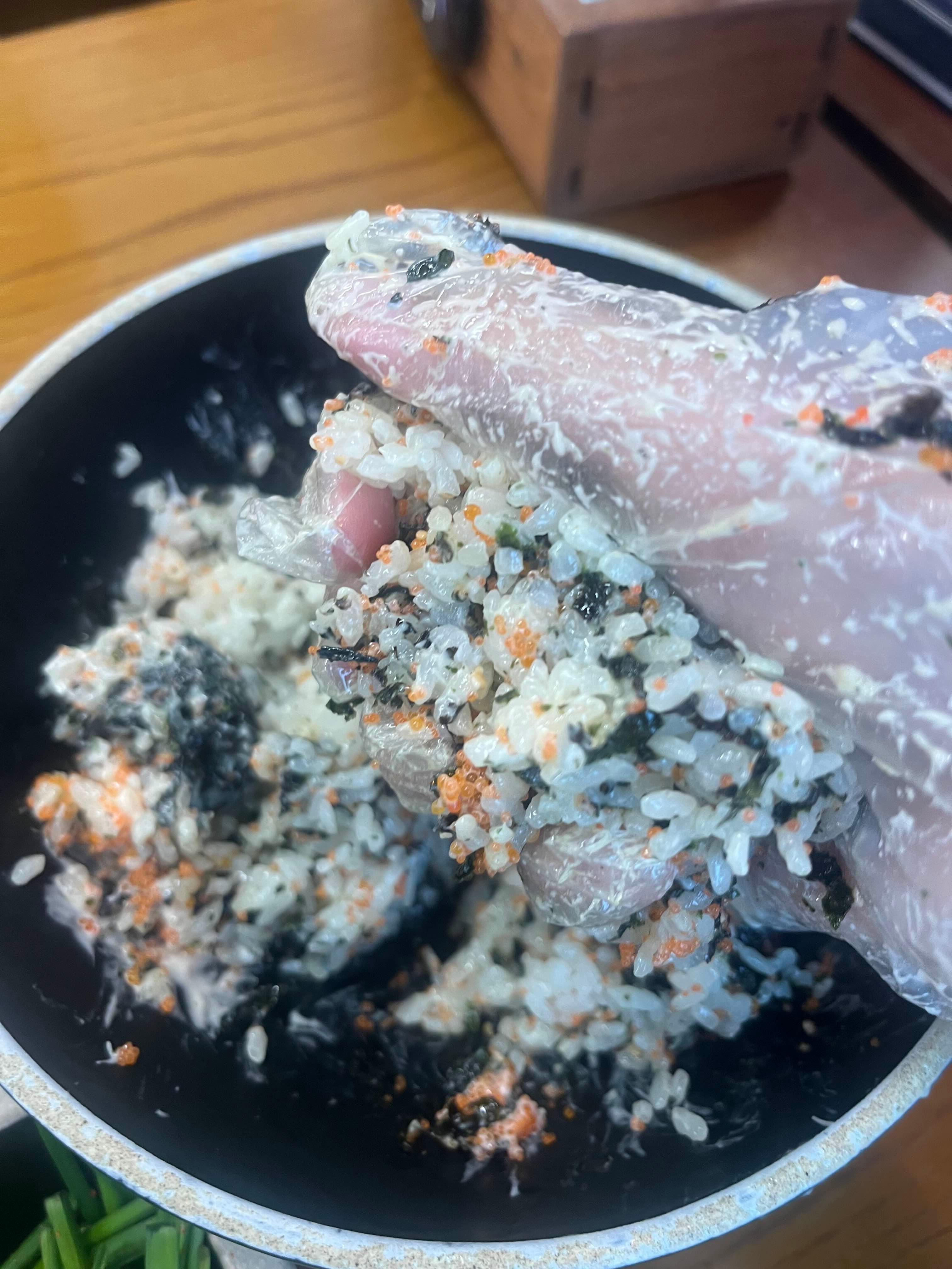 끓이는 동안 주먹밥을 열심히 만들어봅니다
