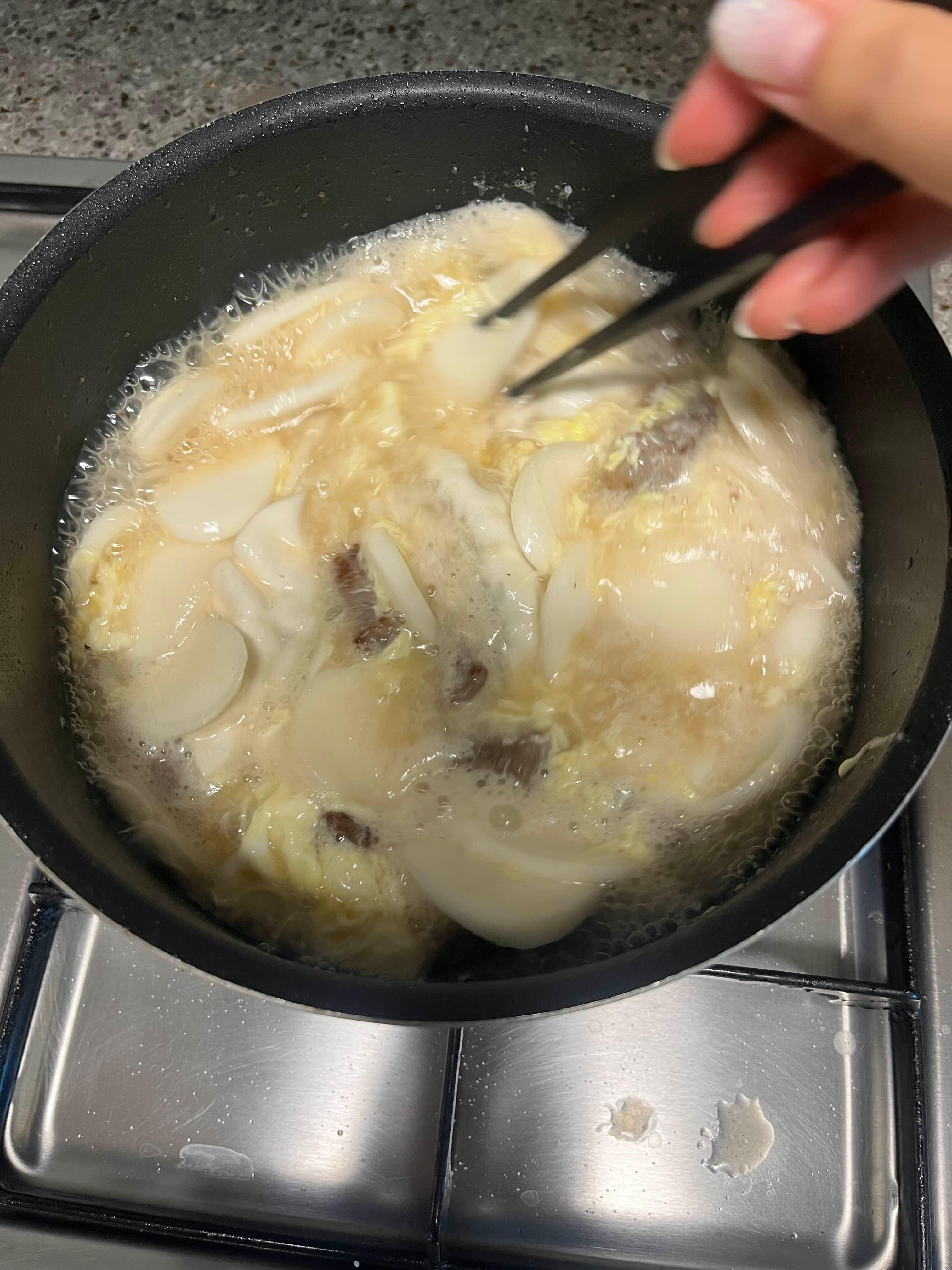 6. 마찬가지로 떡을 넣고 끓어오를 때