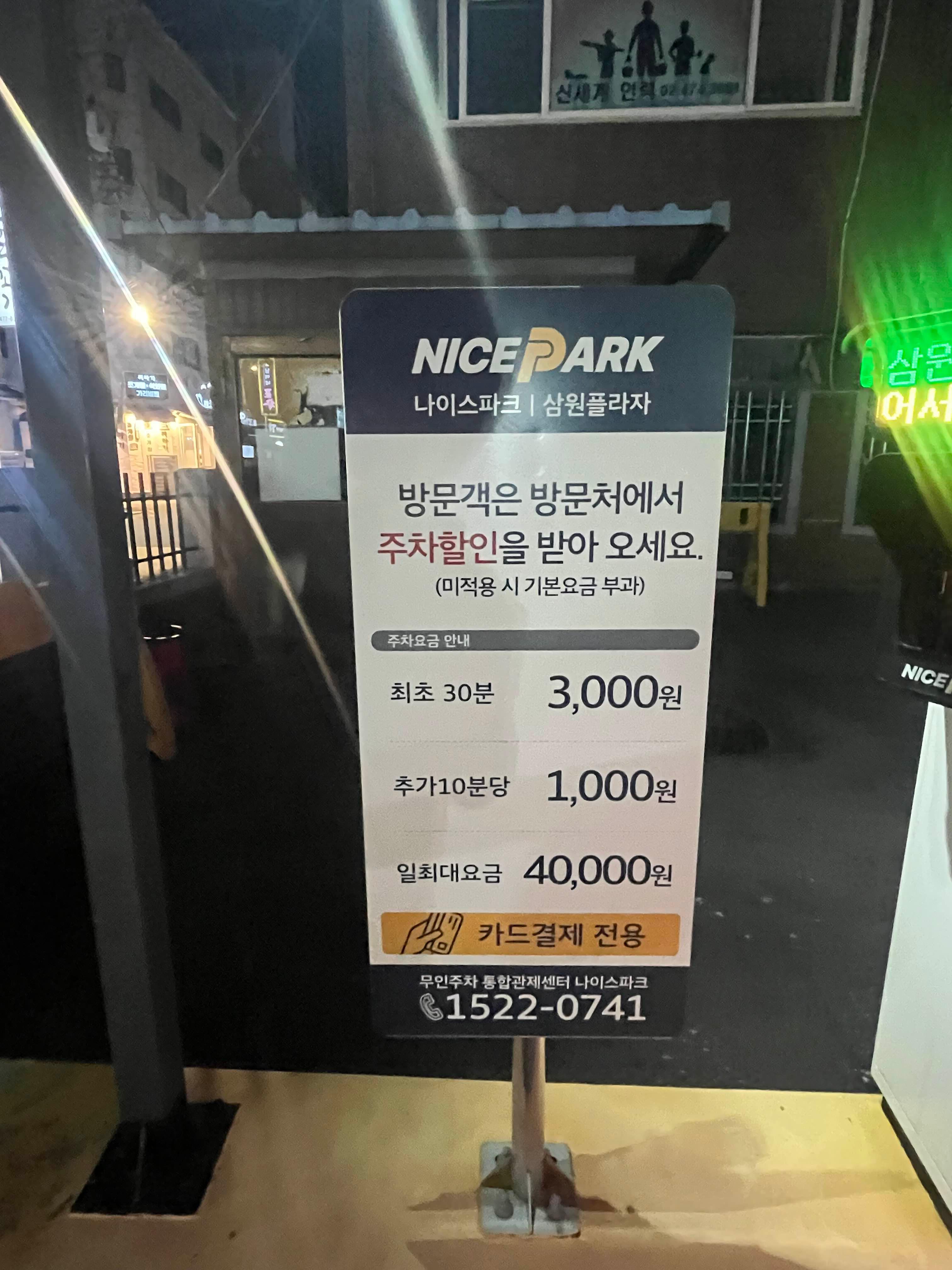 주차는 바로 앞 유료주차장이 있지만