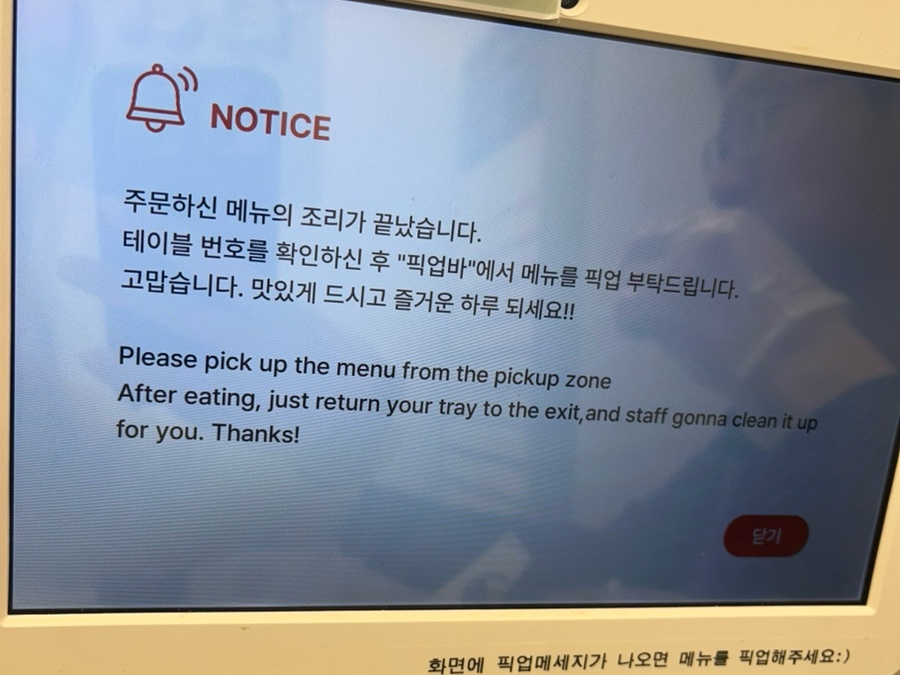 조리 완료 되면 안내가 울립니다