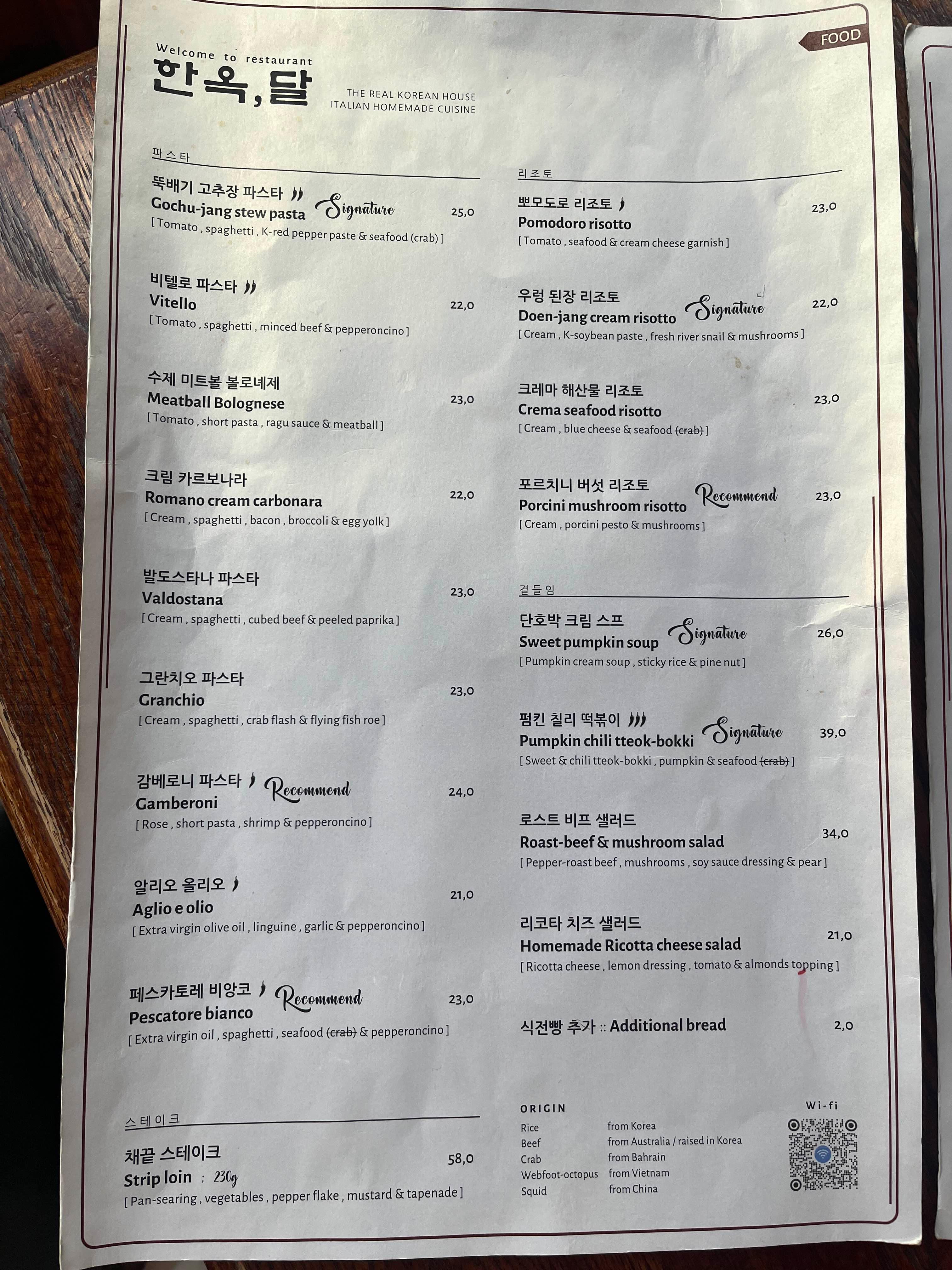 한옥달의 대표 메뉴인 뚝배기고추장파스타와