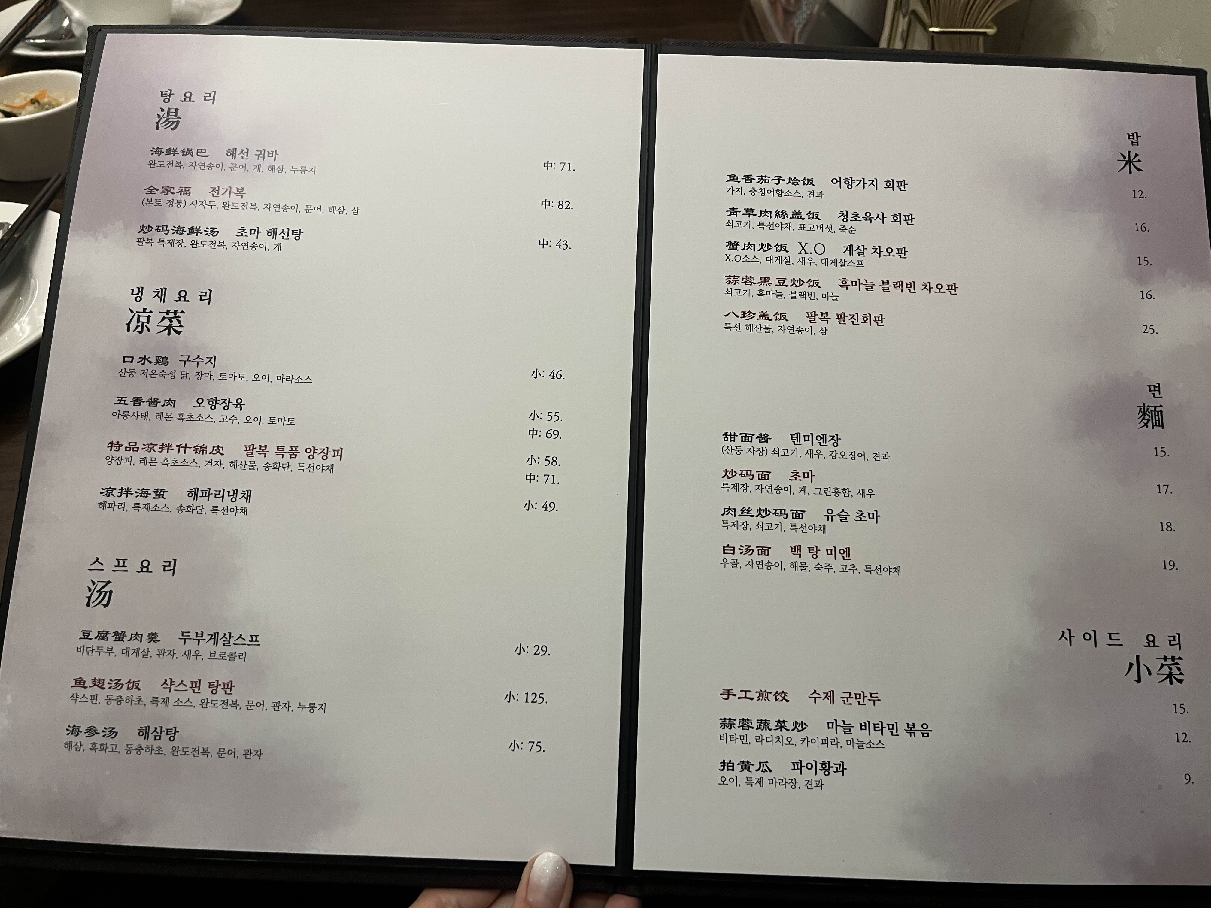 팔복에서는 동파육과 전가복, 양장피가