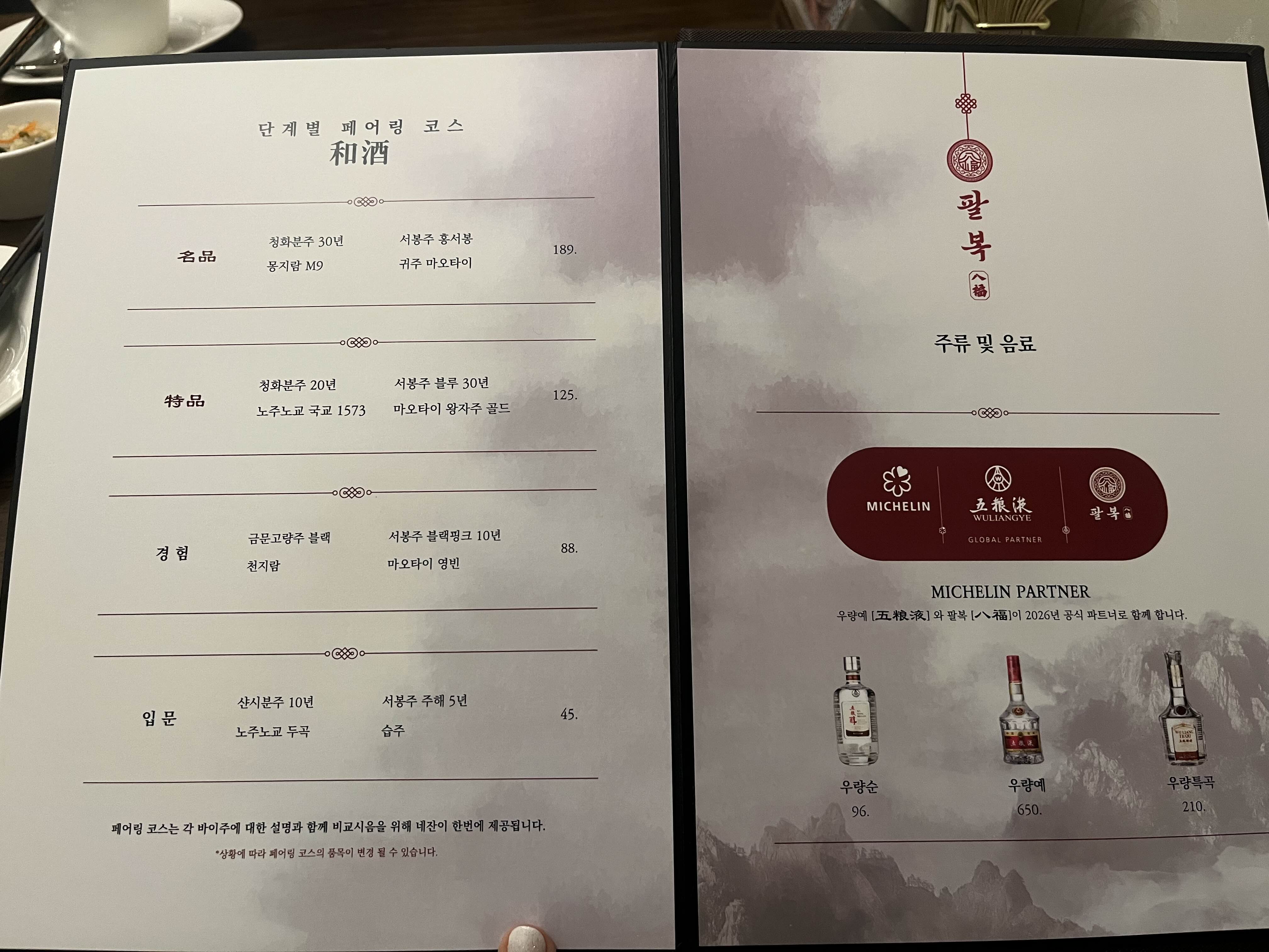 팔복 대표 메뉴, 가격