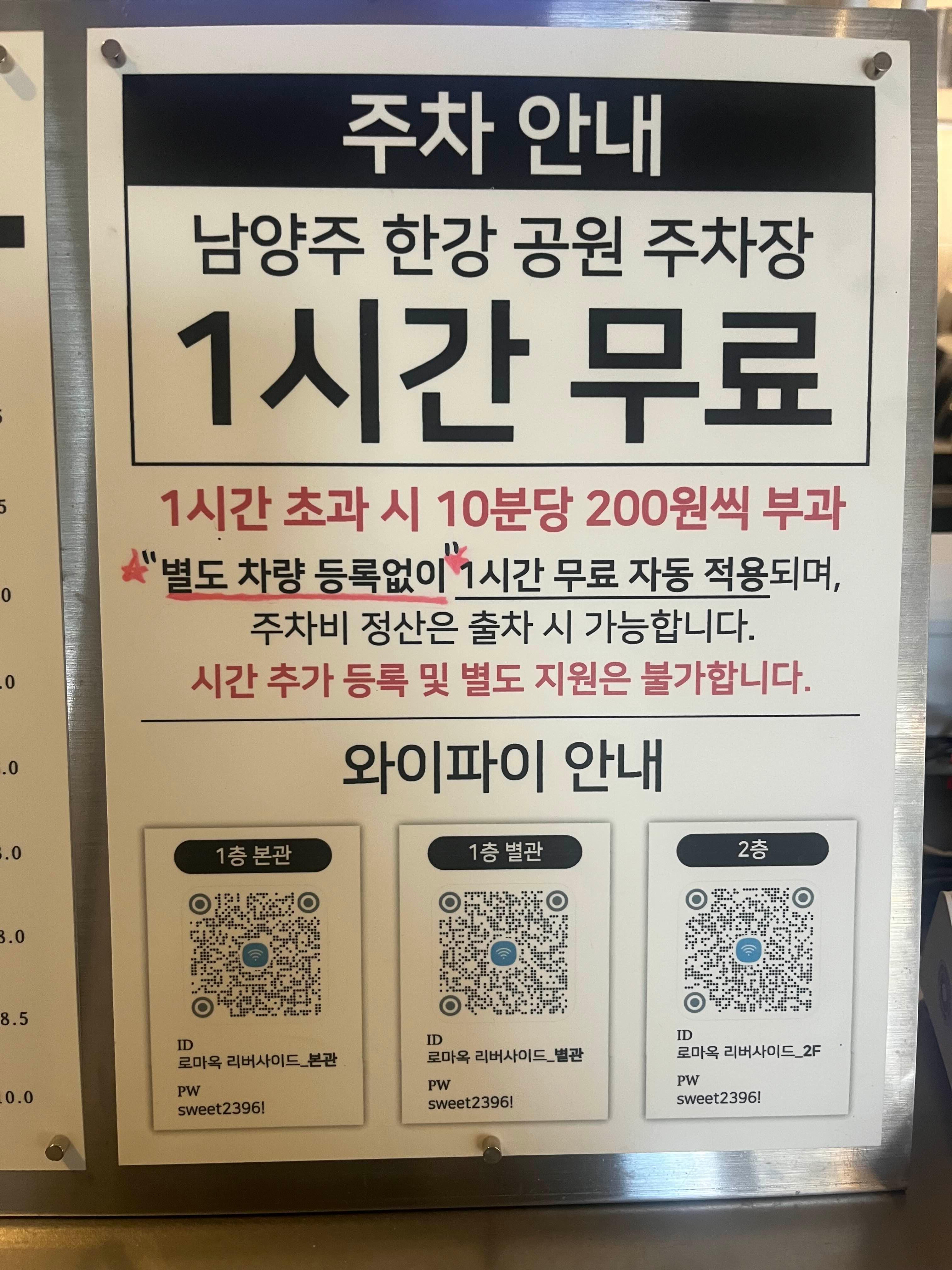 따로 주차 등록 없이 1시간 무료인데