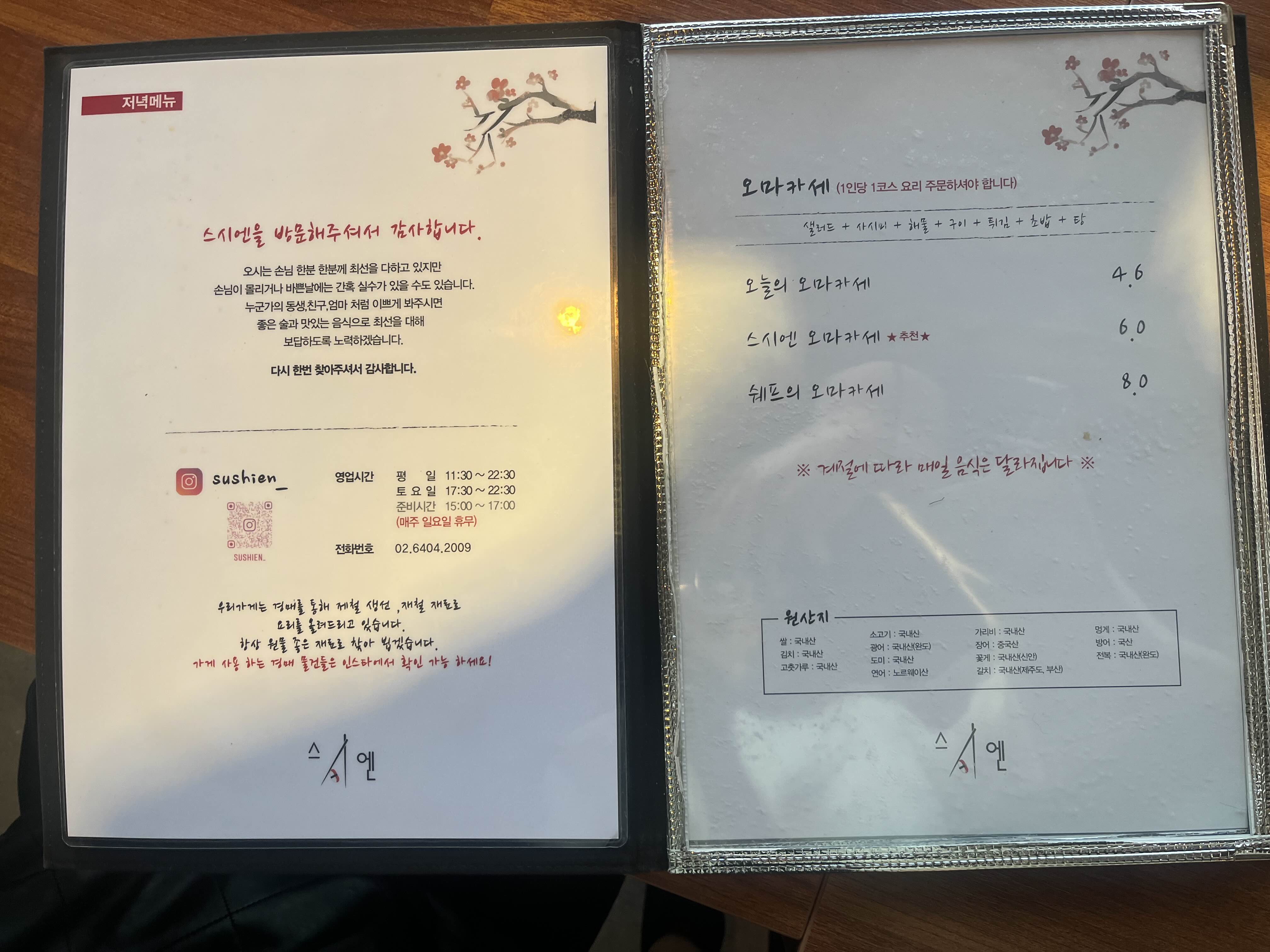 저는 스시엔 오마카세로 주문했어요